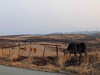 その途中に阿蘇の雄大な牧場や、大きな狛犬、二重峠の石畳などを見学できました。
