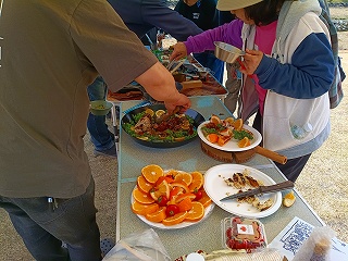 10:45 集合写真~調理拝見~11:15=11:40 羽根谷散策~11:40 ランチ会~
