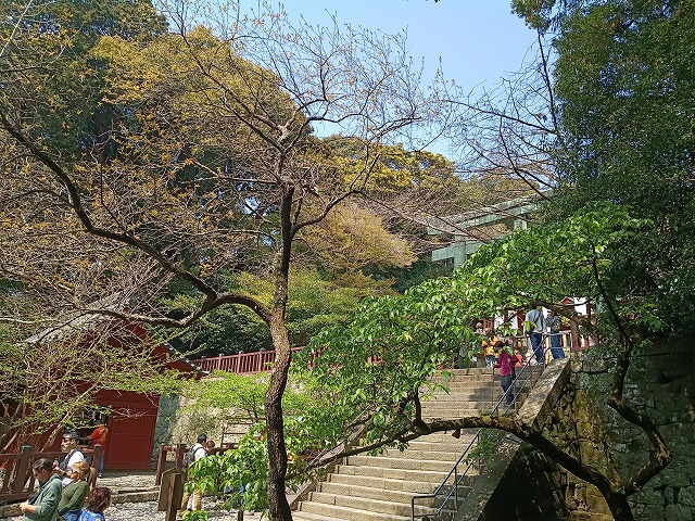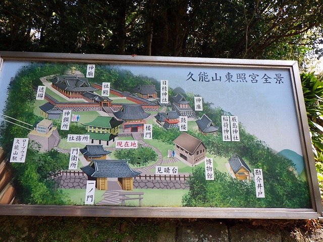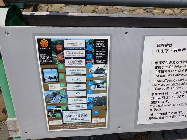 12:15 出発~12:20 入口~12:25 石鳥居~久能梅園~駿河稲荷神社~長坂~潮見坂~12:30 一の門~12:35 見晴らし台~12:40 社務所~