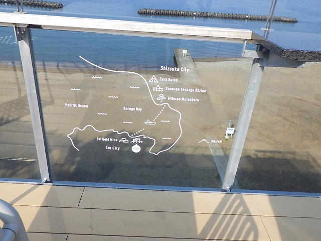9:35 出航~11:00 清水港着~11:10 下船~11:20=11:50 市場 ランチ~11:55 出発~12:10=12:15 久能山駐車場着、準備~