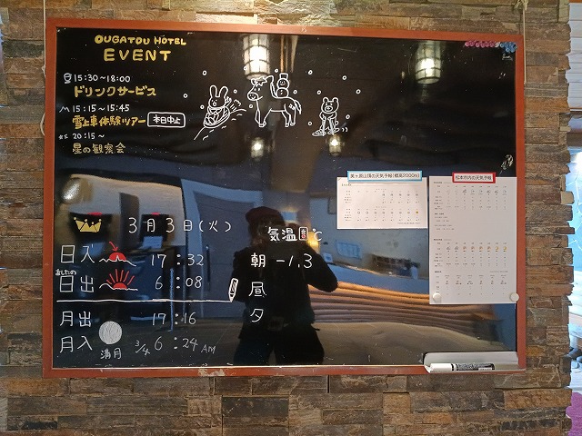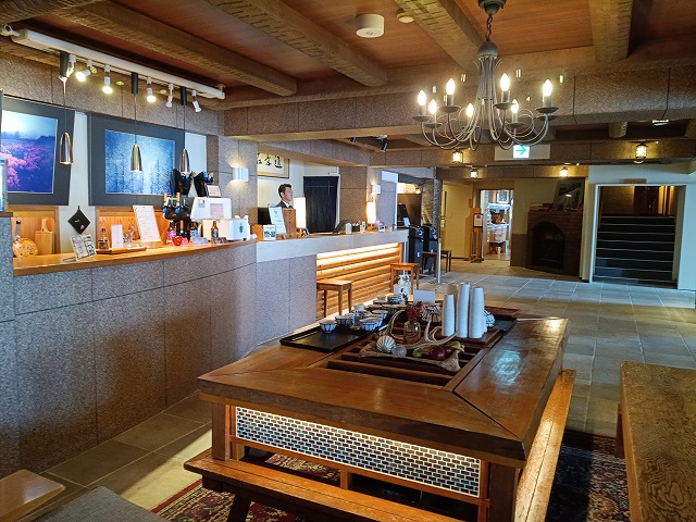 14:20 チェックイン 401号~お茶、館内散策、ウェルカムドリンク(1F)~15:45=16:15 美ヶ原の自然と歴史のスライド教室(4F)