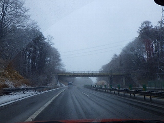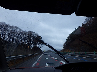 7:30 安八ICから名神高速自動車道、中央自動車道と、、雨です