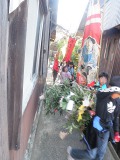 This year's Inoko festival was held on 21st of Nov in this area. Usually, it's held on the day of the Boar, according to Oriental Zodiac in Nov, wishing for the prevention of all kinds of diseases and a healthy life. Elementary school kids gathered around 6 am to start the march. They visit every house of the area and offer them prayers. Small kids, like Umeo, follows the march for fun. I remember that in last year Umeo couldn't walk that far, so followed the march sitting on a baby buggy. Time flies, and soon she will be one of them marching around! Wakana 亥の子 今年のこの地域の亥の子は、11月の21日に行われました。 たいてい、11月の亥の日に行われる亥の子。万病除去や子孫繁栄を祈る行事と言われています。この日、小学生は朝6時ごろに集合して家々を回り始めました。 (う)もそうですが、小さい子どもは面白がってこの行列にくっついていきます。去年の亥の子には、(う)はそんなに長く歩けないのでベビーカーに乗っかってついていったっけ。もう一年が経ったのか、早いものです。そうしてすぐに、あの亥の子マーチの一員になる日が来るのでしょうね。 (わ) |