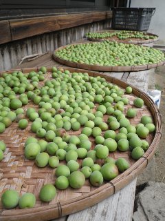 どこかへ出かけようというわけではありません。梅の収穫を迎えるのです。花の時期から春先まで、気象状況もよかったため、出来はまずまずといったところ。今年も梅しごとを迎えられそうです。 ![]() 特に青梅は品質の変化が早いので、加工は段取りよく取り掛からねばなりません。我が家で利用するのは、出荷できないキズ物や規格外のものですが、込めた愛情は美品と同じ。何とか生かし切りたいものです。 毎年飲みきってしまっていたのですが、かんまん部屋へのお客さまにも好評だった梅酒を、今年は大幅に量を増やして漬け込むことにしました。定番の梅ジュースは僕の夏場の仕事を支えてくれます。梅肉エキスは最近では(う)も(す)もお気に入りで、ちょっと体調を崩したときにも重宝するので、毎年たくさん作ります。手はふやけてしわしわ、青梅の果汁が爪の間にしみ込んで痛いのを我慢しながら、「来年はこんなにやらなくてもいいよな」と毎年思うのに、梅が目の前にあると、つい気合が入ってやり切ってしまいます。カリカリ梅にも取り組んでみました。梅肉エキスが煮詰まったのは未明のころ、(わ)は大変お疲れさまでした。 ![]() ![]() ![]() ![]() 今年は嬉しいお便りがひとつ。友人夫婦の初子が誕生し、「誕生記念に梅酒を作りたい、渾身の一本を成人祝いに開けるんだ!」なんてメールが届きました。うちの梅を使いたいなんて、そりゃなんてありがたいことでしょう。発送して間もなく、記念写真が送られてきました。 ![]() この子の誕生を、心よりお喜び申し上げます。おめでとう! ありがとう! (ゆ) Working on plums -unripe plums In this season, I'm quite sensitive about the changes of weather and temperature. Moreover, after finishing the cultivation and selling of Amanatsu, I'm a bit relaxed. I even feel a kind of excitement not because I've got some plans of traveling, but because the season for Japanese plum starts. It has been a good weather for plums since the flowers were in bloom, so they are in good condition. Now it's time to enjoy working on plums. After picking, we need to be especially organized and prepared to deal with unripe green plums because the quality changes rapidly. We use non-standard plums for our own consumption, but I've taken care of them with as great care as the standard ones that we sell. So, we try to utilize all of them anyways. This year, we decided to prepare Umeshu (plum wine) much more than last year. Usually, Umeshu bottles get empty quite fast because our guests love to drink a lot whenever they stay with us. So why not prepare more? Plum juice can't be forgotten too, which saves me after the hard work during summer. Plum extract is our reliable health food, and now Umeo and Sukla also love to take it everyday. Plum extract really works when you upset your health as well, so we make it quite a lot every year. During the preparation of the extract, our skin gets wrinkly, and the juice from unripe plum makes the cuticles of our nails painful. Baring those pains, I always think that we don't need to do this much next year, but whenever I see a lot of plums in front of us, I can't help working on all of them! Plum extract really takes time, so it was done till after midnight. Wakana really worked hard! We got one happy news this year. A friend of ours had a baby, and they emailed me saying "we'd love to make Umeshu to commemorate our son's birth, so please send unripe plums. We are going to open the bottle when he becomes 20 years old!" How cool that they want to use our plums for the special bottle. Soon after sending plums, they sent us a picture of their Umeshu. We are really happy for their child's birth. Congratulations! Yuki |