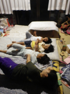 ![]() It was in 2010 when we first met M-san and her daughters, M-chan and S-can. Since then, M-san has been such a good friend of us, cheerful, active, gentle and sensitive. We often used to say that it would be nice if we have a sleepover party at each other's homes when kids grow up a bit more. And now the time has come! During the day, we met up at the local cultural center to watch a free movie for kids (we watched "Frozen", a timely one!), then came back to Kanman-beya together. Yuki was already back from work and preparing the Irori-fire place for BBQ party. Y-kun, our Club Ponpi buddy, and his family joined the BBQ for dinner, we enjoyed a lot of wild boar meats and chatted together. Y-kun's family went back home at night, but the older kids (including Sukla) stayed up until they finally got exhausted and fell asleep. Mothers, M-san and myself, slept with kids once, but when I woke up for Makasa's breast feeding, M-san woke up too, and we started chatting about various things for... hours! When I looked at the clock, next breast feeding time had come. Phew! ![]() Thank you very much, M-san, for being whatever as you are and being such a comfortable friend of us, and Y-kun's family for sharing a lot of time with us as family friend. Wakana 今夜はお泊り会 初めてMさんと娘のMちゃん・Sちゃんに出会ったのは2010年。それ以来、ずっと仲良くしてくれています。Mさんは、明るくてフットワーク軽く、優しくも繊細な魅力的な人です。以前から「子どもたちがもうちょっと大きくなったら、お泊り会とかしたいよね」と話していたのですが、ついにその時を迎えました。 日中に、近くの文化会館で催された「子ども映画祭」でおちあい、映画を一緒に観て(話題の『アナと雪の女王』を観ましたよ)、そのまま「かんまん部屋」に帰ってきました。すると、もう仕事を切り上げて帰ってきていた(ゆ)がBBQ用に、囲炉裏に火を入れているところ。 ![]() 囲炉裏BBQには、「ぽんぴくらぶ」の相棒Y君も一家で遊びに来てくれました。一緒にたっぷりとシシ肉BBQを食べておしゃべりして。夜になって、Y君一家は帰って行きましたが、(す)を含めた大きなガールズは、ついに遊び疲れて眠りつくまで、たっぷり夜更かしです。母たちもその時に一緒に寝ましたが、一度(ま)の授乳に私が起きると、Mさんも一緒に起きておしゃべりが始まりました。あんな事こんな事話しているうちに、時間は過ぎて・・・時計を見ると、あれ、また次の授乳時間になってる!びっくりです。 Mさん、そんなあなたでいてくれて、心地よい友人でいてくれてどうもありがとう。そして、家族ぐるみでたくさんの時間を共にしてくれるY君一家にも、感謝の気持ちでいっぱいです。 (わ)