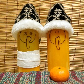 poco got hurt. ![]() 畑で転んだんだって。 ジュース瓶から進化したpocoとlocoにとっては大変なこと。 She said she fell in the step fields. It IS a serious matter for them, who are originally a juice glass bottle. ![]() 大好きなみかんもここまで。 治るまでは寝るときも立ったまま。 She can keep her favorite orange juice only up to the crack. She has to keep standing, even when she sleeps, untill it get cured. でも本当は、 But the trueth is... ![]() locoがけとばした石をよけてバランスを崩したの ...that the stone loco kicked down threw poco off balance. ![]() locoは知らない loco doesn't know the fact. ![]() pocoもlocoの献身的な看病が嬉しい。 poco is, anyway, happy with loco's dedicated nursing. というわけで、 Anyway, ![]() 温州みかんの収穫も終わり、今期最後のジュースも搾り終えました。 伊予柑のジュースができるまで少しお休み。 We finished both harvesting Mandarin (citrus reticulata) and making the last juice with it. Next juice will be made from Iyokan; till then poco & loco can take a break for some time . 昨年はお問い合わせどうもありがとうございました。 本年またどうぞよろしくお願いいたします。 Thank you very much for your order last year and hope you would enjoy this year's ones too! (ゆ) Yuki |