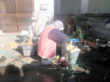 大根洗うバアやん、切り出すじいやん。 去年の分の切干大根。色もきれい。