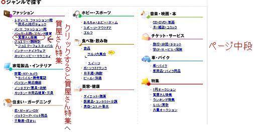 オークショントップページの検索窓よりも、ここでジャンル選択のクリック、