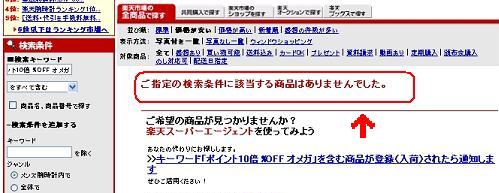 検索条件に該当する商品はありませんでした、