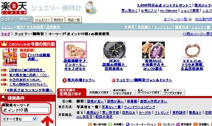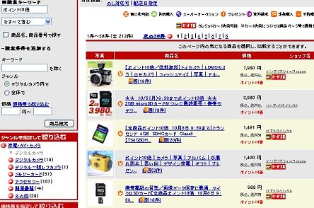 ↑(例 ジャンル→デジタルカメラ キーワード→ポイント10倍+ソニー)