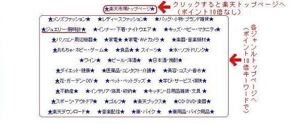 各ジャンルトップページに、既にポイント10倍のキーワードが