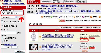 10倍の高倍率で検索した方が効率的なので、そのため、ポイント10倍で検索するように