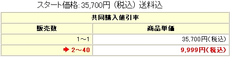 購入者が2人以上から、(2個売れた場合)共同購入値引の9999円で販売。