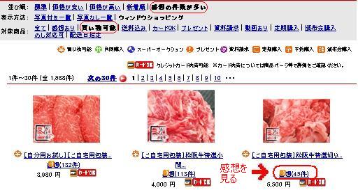 松坂牛の一覧が並ぶ。専用市場では、楽天側の設定で