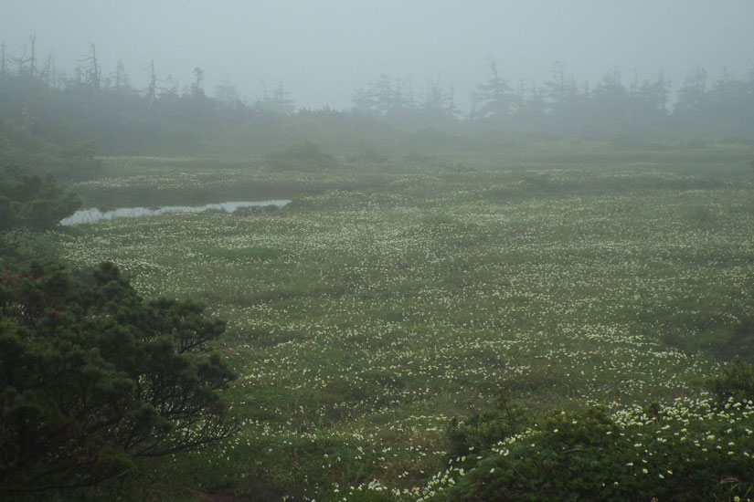 朝、満天の星空に期待をもって、移動 ![]() が、霧に小雨が。どうしたものかと、同じ道を駐車スペースを探しながら、2往復。 雨に降られてもいいぞと、覚悟を決める |
