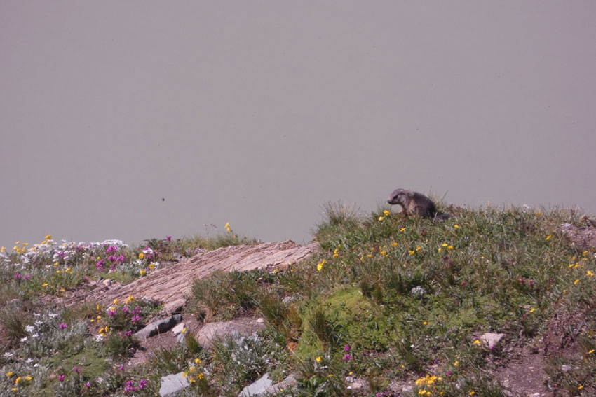 少し進むと道が2つに分かれますので、メインルートから外れた「カイザー・フランツ・ヨーゼフス・へーへ(Kaiser-Franz-Josefs-Höhe)」の方へ向かってみましょう。 しばらく走るとビジターセンターの建物が見えてきます。 展望テラスからは、グロースグロックナーが雄姿をを存分に眺めることができます。 眼下には「パステルツェ」という名の大氷河が広がっていたのですが、現在は温暖化の影響で驚くほど後退しています。 10年ごとの氷河を比較したパネルを見ると、その縮小具合には言葉も出ません。 この氷河へハイキングの予定が、トンネル先が落石の為、通行止め トンネル先で展望とマーモットを楽しむ |