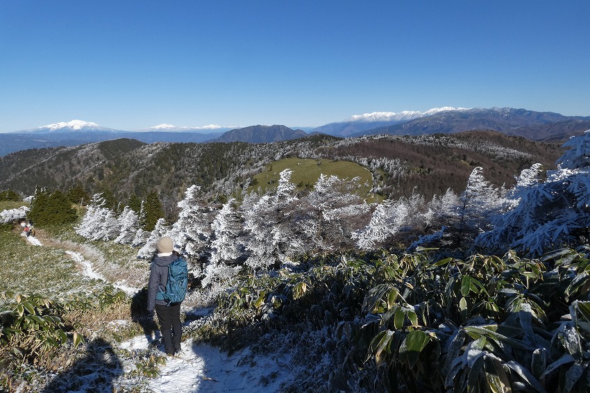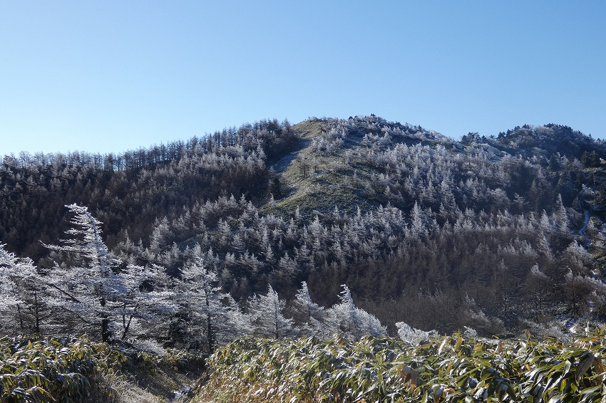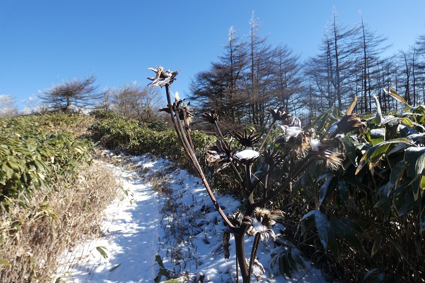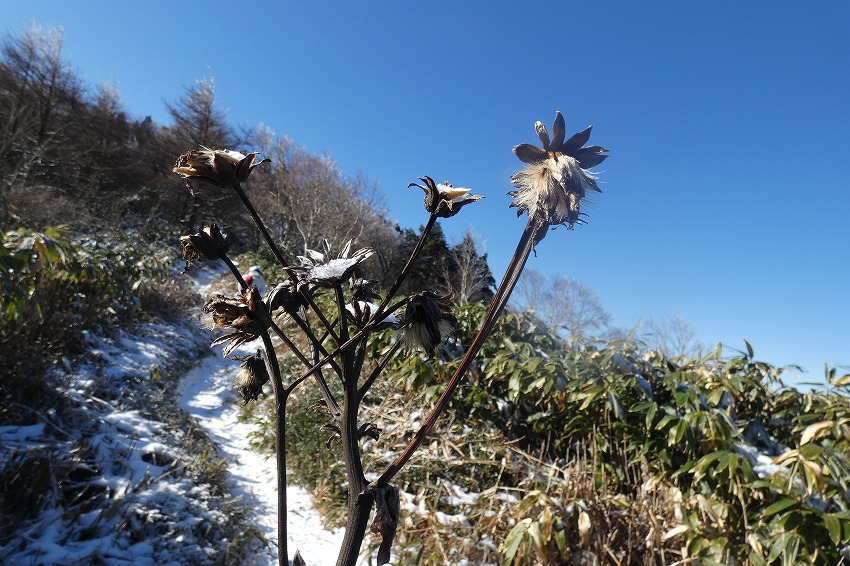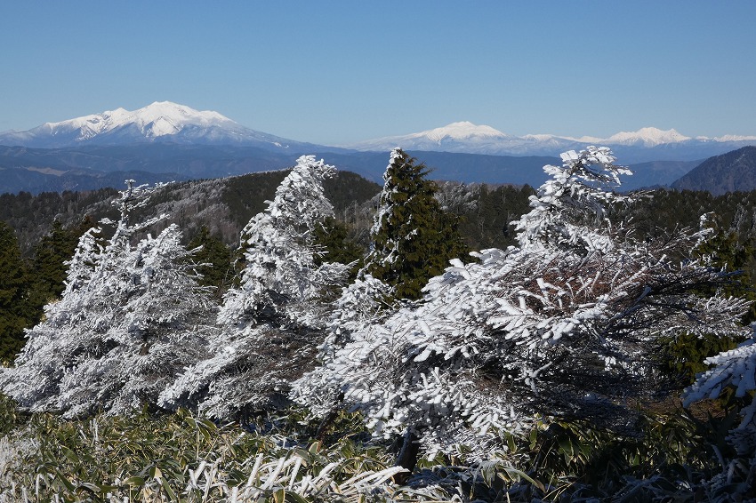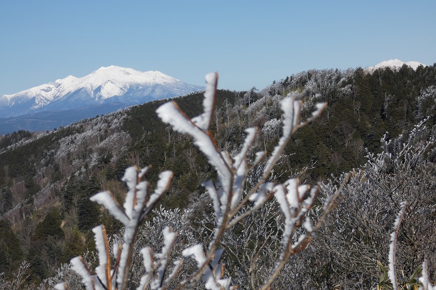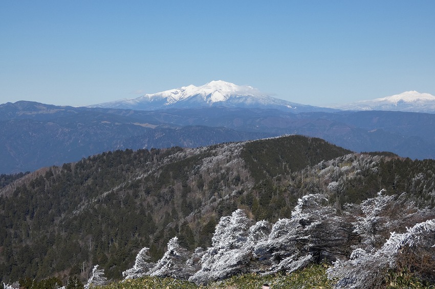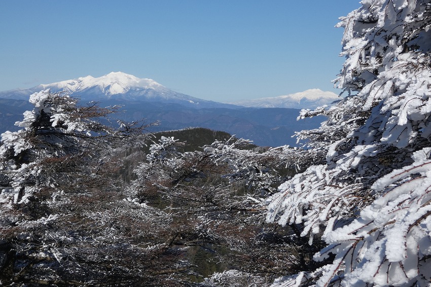 ![]() 御嶽山 (雪が多いと笹が雪の下になり、見やすいんですがね) |