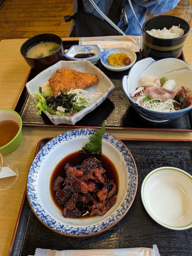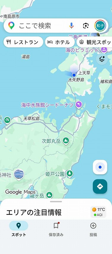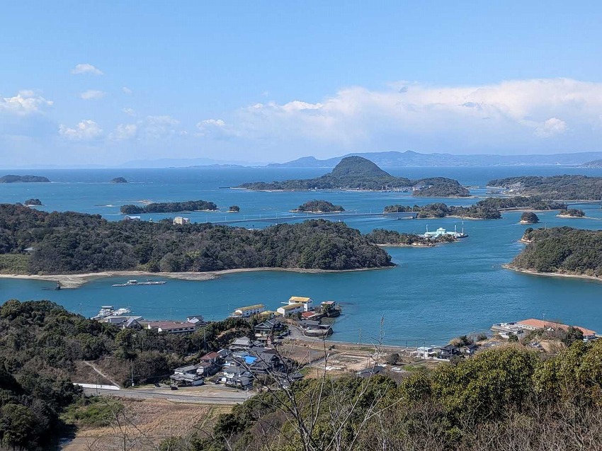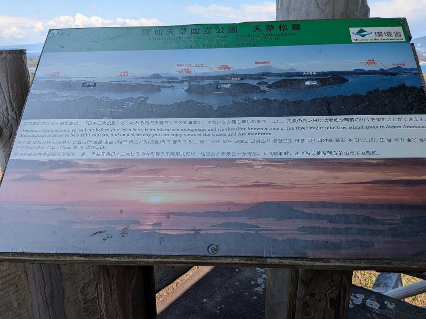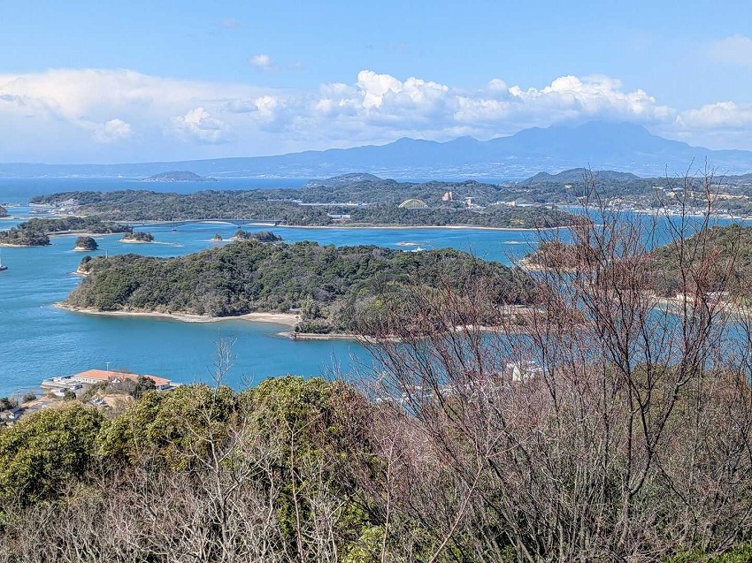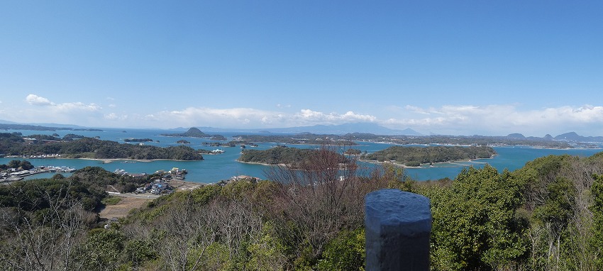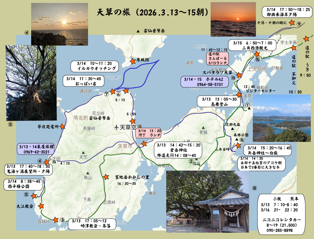 (ジオンさん記) 今日から和たんと 九州遠征です 。まず1日目は天草へ 。 朝5時45分出発 。小牧空港7時10分発の飛行機に乗り、8時30分に 熊本空港着 。 そこで レンタカーを借りてから、天草に向かって出発です。 途中 道の駅 に色々寄って、 晩柑 、不知火、はるか など 柑橘類をいっぱい買い込んで、 お昼は道の駅サンパールで日替わり定食です 。 最初に天草ビジターセンターに寄って、海を見ます。 それからまず第1弾 高舞登山です 。 ここも 麓の集落から ほぼ9合目ぐらいまで車で、 そこから約5分の軽いウォーキングでした。 でも日本三大 松島の1つと言われる 天草の景色が見られて良かったです。 次に倉岳に向かいます。 |