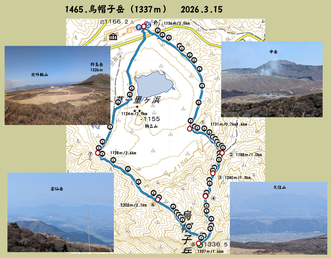| 1465.阿蘇烏帽子岳(1337m)(2026.3.15) | |||||||||||||||||||||||||||||||||||||||||||||||||||||||||||||