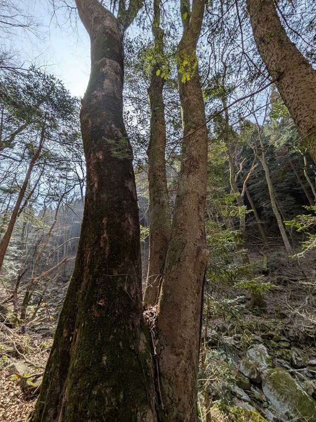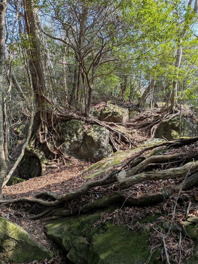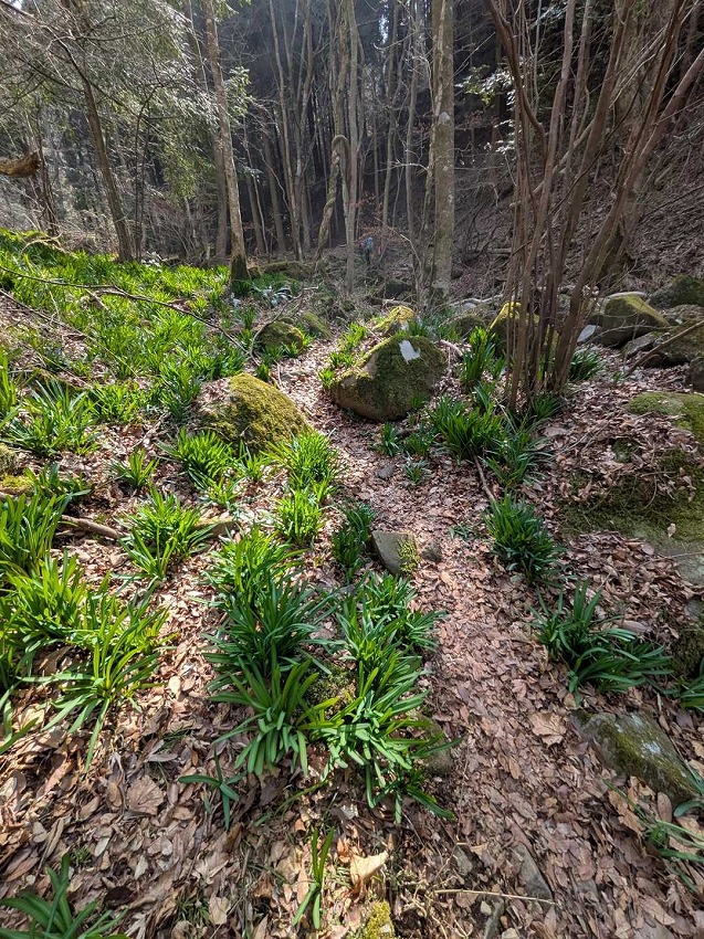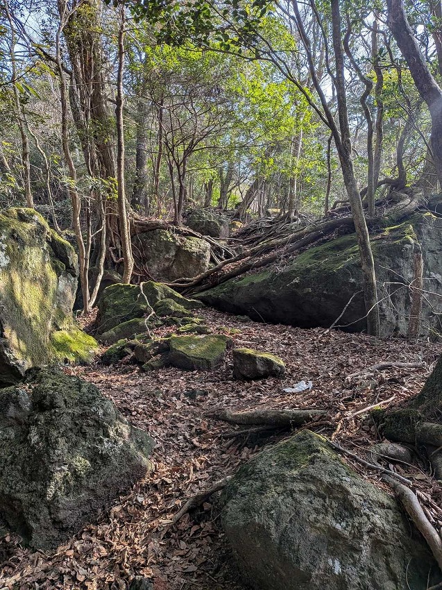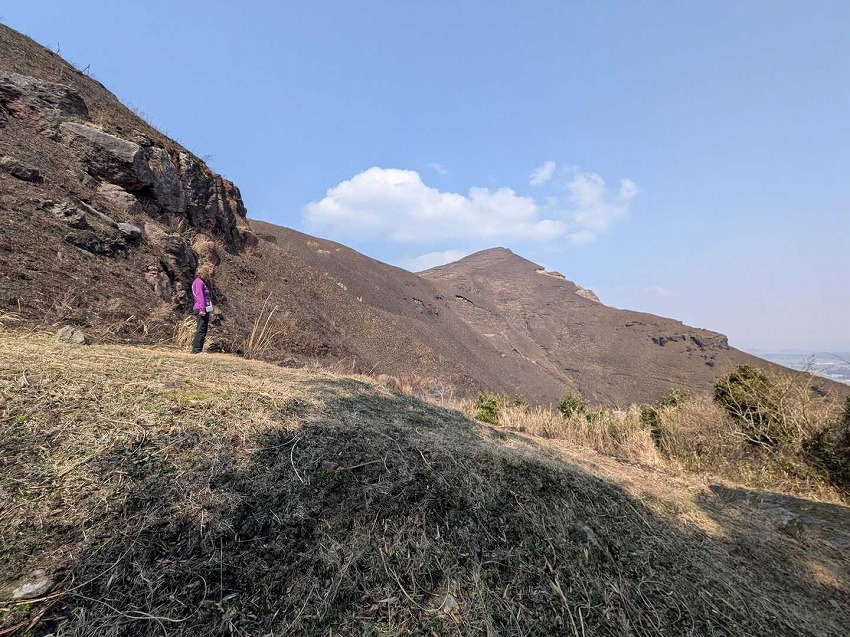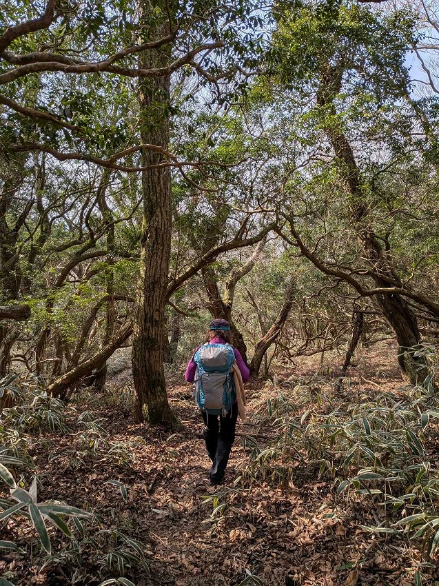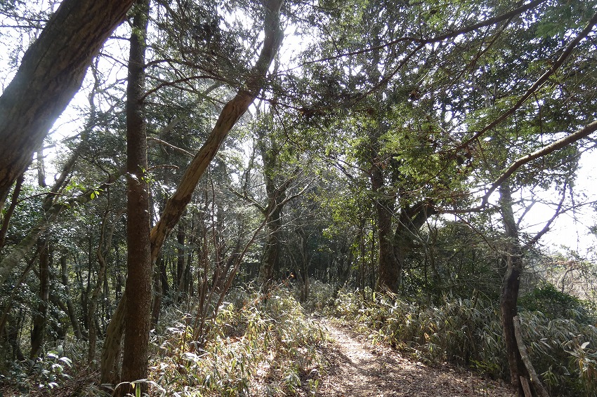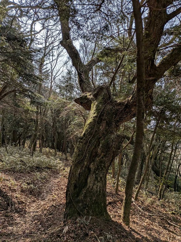 今日(4日目・最終日)は ペンションで朝食が7時半からなので、 朝イチ 6時出発で、大観峰 へご来光を見に行きます。 今日は雲が出ていて、こんな感じでしたが、 なかなか 雰囲気がありました 。 戻って宿の美味しい朝ごはん 。 ハム エッグに、サラダに、果物 、コーヒーと牛乳、いっぱい いただきました 。 さすがにパンまでは、食べられないので、 行動食に戴いてきました。 朝食後、すぐ出発して 登山口に9時過ぎ。 最初に矢護山へ向かいます 。途中の不動寺跡というところに 、珍しいキノコとハナネコノメがあるそうです。 なんと標高1000m の駐車場から200m降って行きます 。 200m 降って、そこからまた矢護山に登り返して、周回して戻ってきました。 登山口に、12時10分 。 和たんが降りてくるまでに、時間があります。 矢護山の山頂から見た 鞍岳山が気になって、 往復30分に位なので、そのまま和たんにメールをして、 登ります。 鞍岳山は 簡単に登れて、アセビのあるところが、広々と気持ちよく、なかなか良いところでした。 時間がないので、分岐から男岳だけ登って、すぐに戻ります。 矢護山を止めて、不動寺跡から、戻って、 鞍岳山を周回した方が良かったかなと思いましたが、行って見て分かった次第です。 |