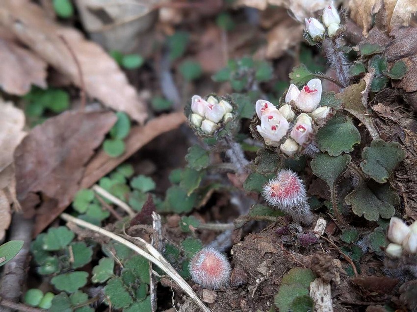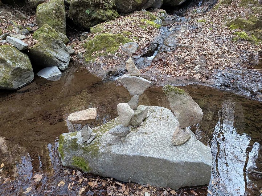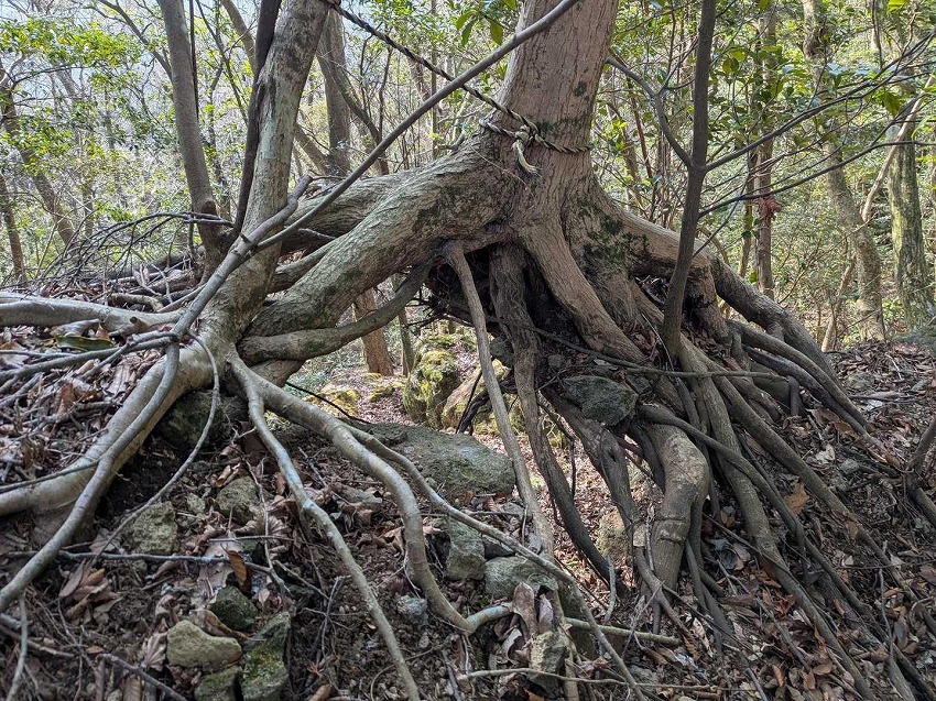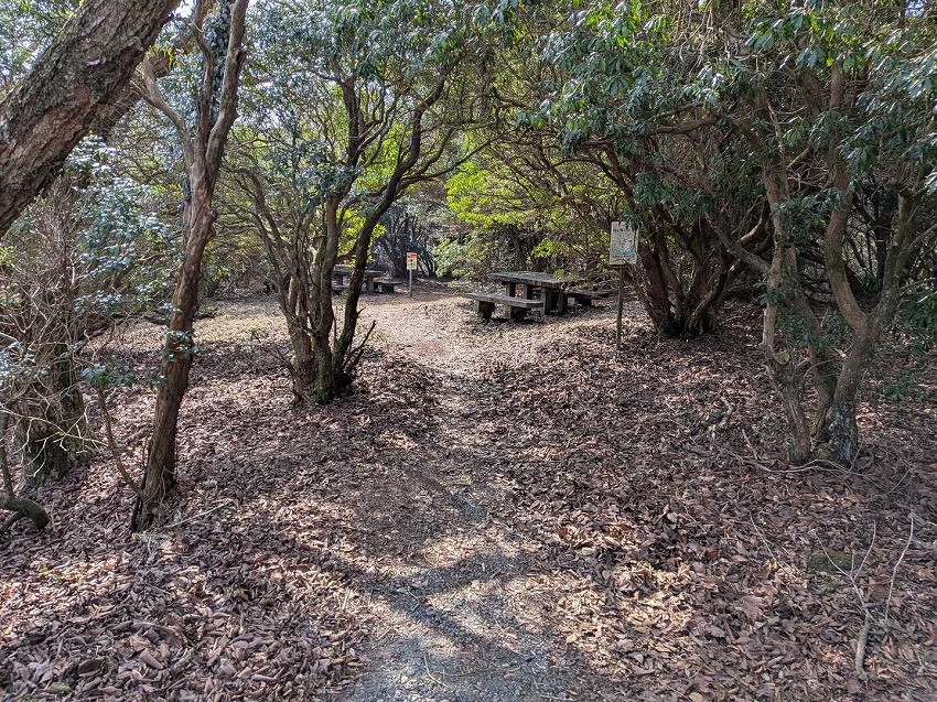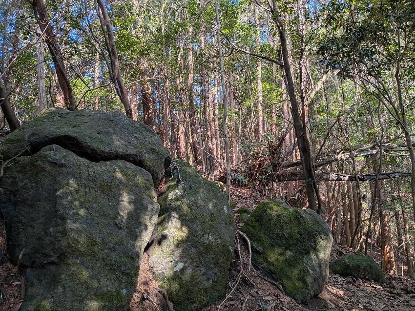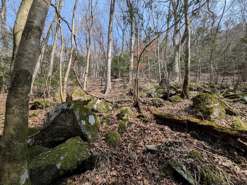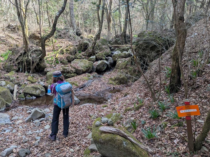 今日(4日目・最終日)は ペンションで朝食が7時半からなので、 朝イチ 6時出発で、大観峰 へご来光を見に行きます。 今日は雲が出ていて、こんな感じでしたが、 なかなか 雰囲気がありました 。 戻って宿の美味しい朝ごはん 。 ハム エッグに、サラダに、果物 、コーヒーと牛乳、いっぱい いただきました 。 さすがにパンまでは、食べられないので、 行動食に戴いてきました。 朝食後、すぐ出発して 登山口に9時過ぎ。 最初に矢護山へ向かいます 。途中の不動寺跡というところに 、珍しいキノコとハナネコノメがあるそうです。 なんと標高1000m の駐車場から200m降って行きます 。 200m 降って、そこからまた矢護山に登り返して、周回して戻ってきました。 登山口に、12時10分 。 和たんが降りてくるまでに、時間があります。 矢護山の山頂から見た 鞍岳山が気になって、 往復30分に位なので、そのまま和たんにメールをして、 登ります。 鞍岳山は 簡単に登れて、アセビのあるところが、広々と気持ちよく、なかなか良いところでした。 時間がないので、分岐から男岳だけ登って、すぐに戻ります。 矢護山を止めて、不動寺跡から、戻って、 鞍岳山を周回した方が良かったかなと思いましたが、行って見て分かった次第です。 |