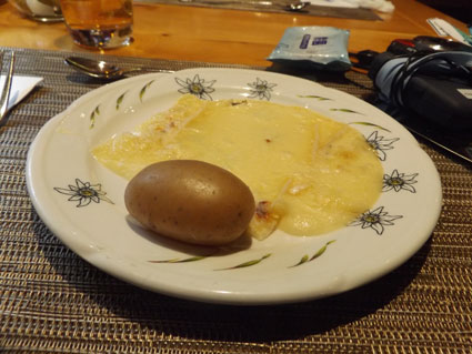 | 今までで、食べた食事の中で、一番ラクレットが美味しいかも ぼっこりしたじゃがいもと、このチーズが私の口に合います 酸味の濃いドレッシングをスイスの方々はお好きなのか、最初に出るサラダは酸味が強いです。 でも、いやじゃなかったな。 サラダ・メイン・デザートのパターンが多く、スープやら、レタス以外の野菜も食べたいなと。 思ったのは、魚貝類が少ない。海草・小魚・緑黄色野菜に飢えてます。 インゲン・人参は出ますが、ちょっとくたくた。 美味しいご飯が食べたいとの声がありますが、炊き立てのご飯とお味噌汁は、帰国後の楽しみに 農業生産を支えている為、物価が高い。のんびり放牧されて牛は、美味しい乳を出すでしょう。 その加工品のチースが多いのがよくわかります。あと、主食が小麦粉(パン)か、じゃがいも。 畑には、日本と同じように、(時期が遅く) エンドウ・ソラマメ・玉葱・レタス等、普通に家庭菜園されてましたが、量は少ない様に感じました。 |